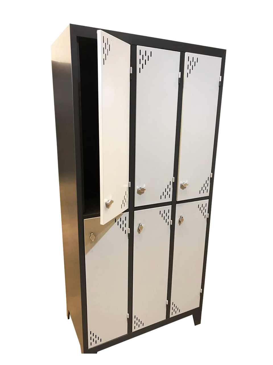 Interiores: con perchero y barral porta perchas. Puertas con perforaciones para ventilación.