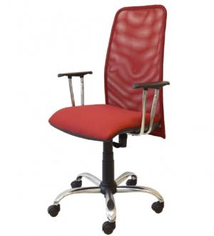 SILLA FLASH CROMADA CON RESPALDO MEDIO DE TELA MESH Y APOYABRAZOS ALFA