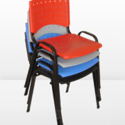 Colores disponibles: negro, gris claro, gris oscuro, azul, verde, naranja, petróleo y rojo. Estructura en hierro trafilado macizo cromado, estilo trineo.