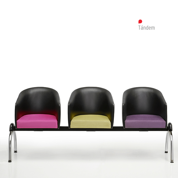 Opcionales: Módulos de 2, 3 y 4 puestos de asientos y mesas combinables.
