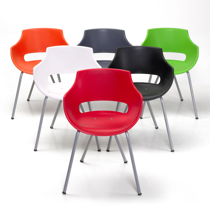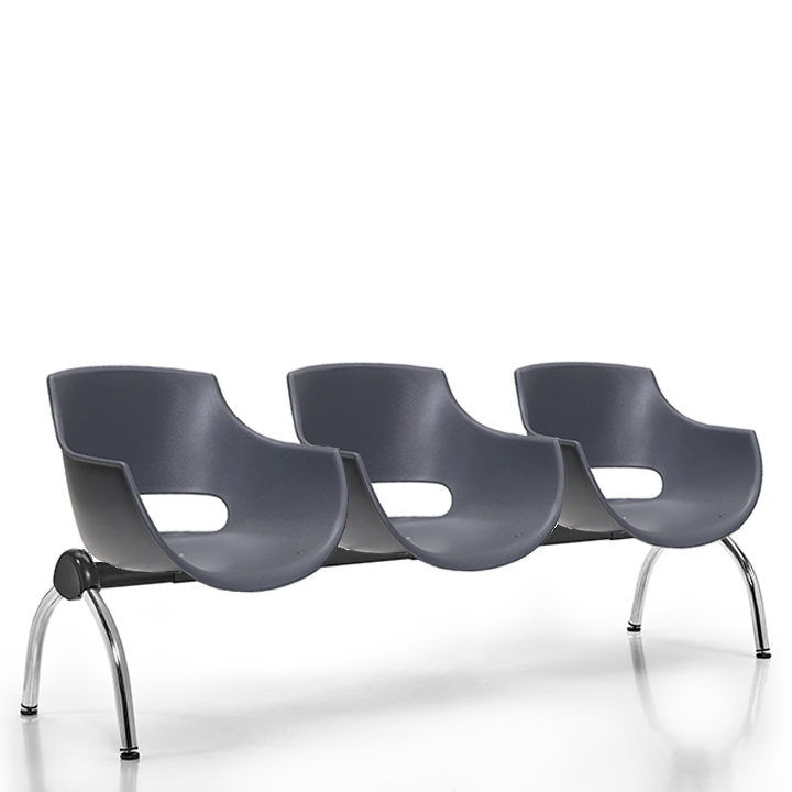 Opcionales: Módulos de 2, 3 y 4 puestos de asientos y mesas combinables. Plásticos en color: Blanco, chocolate, gris, menta, naranja. negro, rojo, verde manzana.
